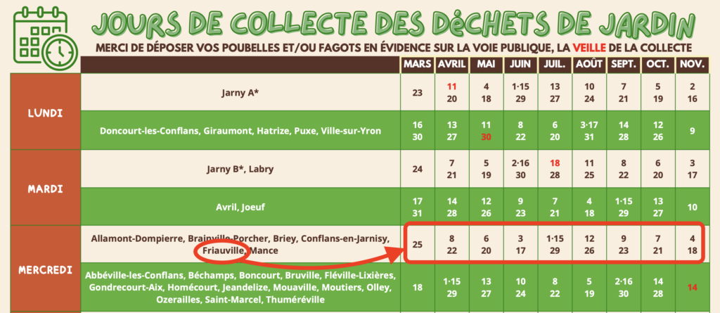 Jours de collecte pour les déchets végétaux : 1 mercredi sur 2 depuis le 16 mars 2026